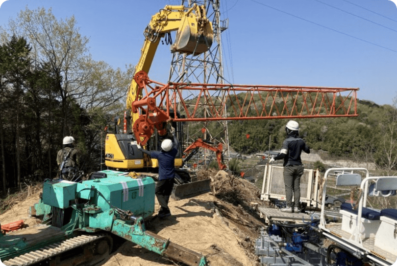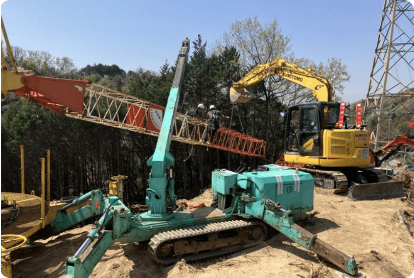 石田組では仮設工事、基礎工事、鉄塔組立工事を主に請け負っております。