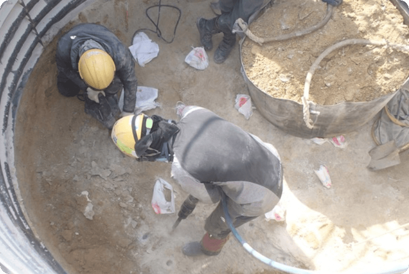 主に掘削作業、配節作業、脚材据付作業、生コン打設を行います。